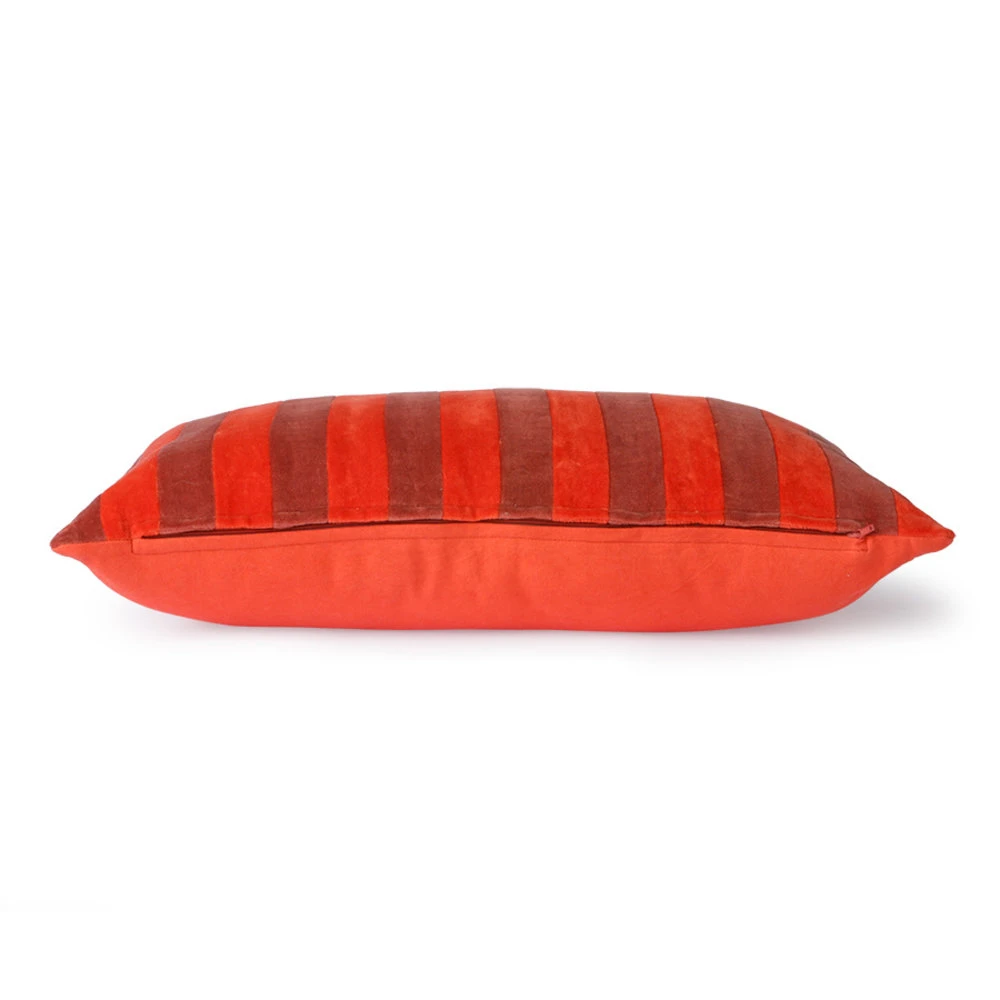 HKliving Gestreept Velvet Kussen -rood/bordeaux 30x50cm